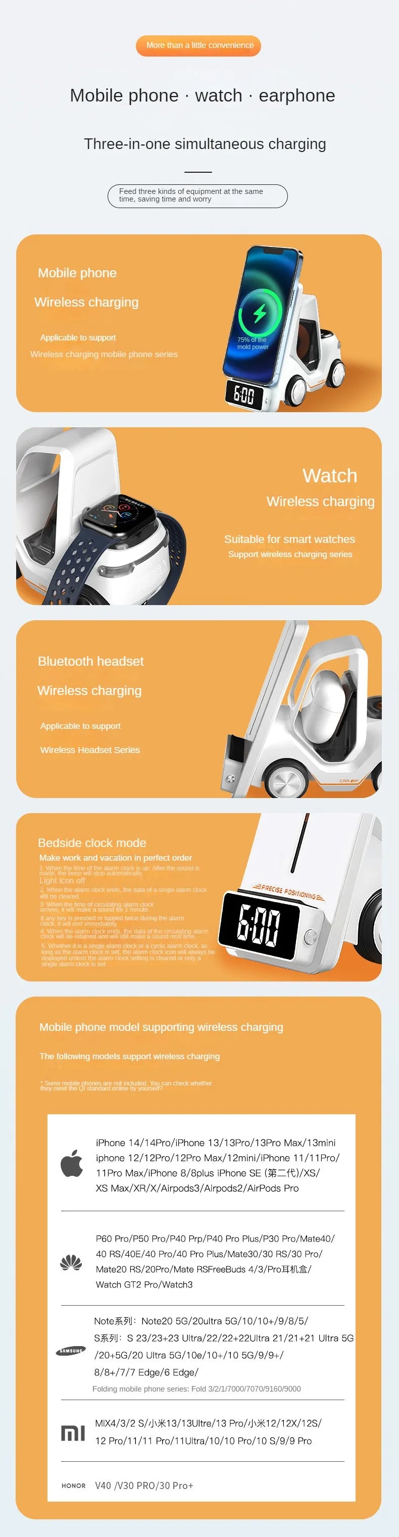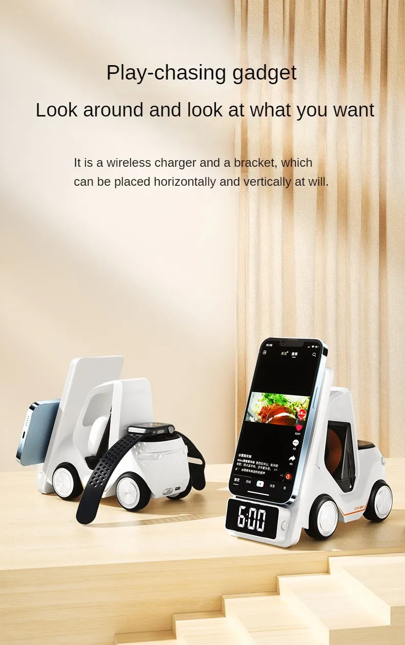 Desktop 3-in-1 wireless fast charging bracket car shape