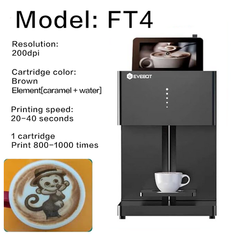 Coffee Printer Automatic 3D DIY Printing Photo. Printer On Food Like Cake Bread Coffee Cocktails. Beer. Beverages and Food Surfaces